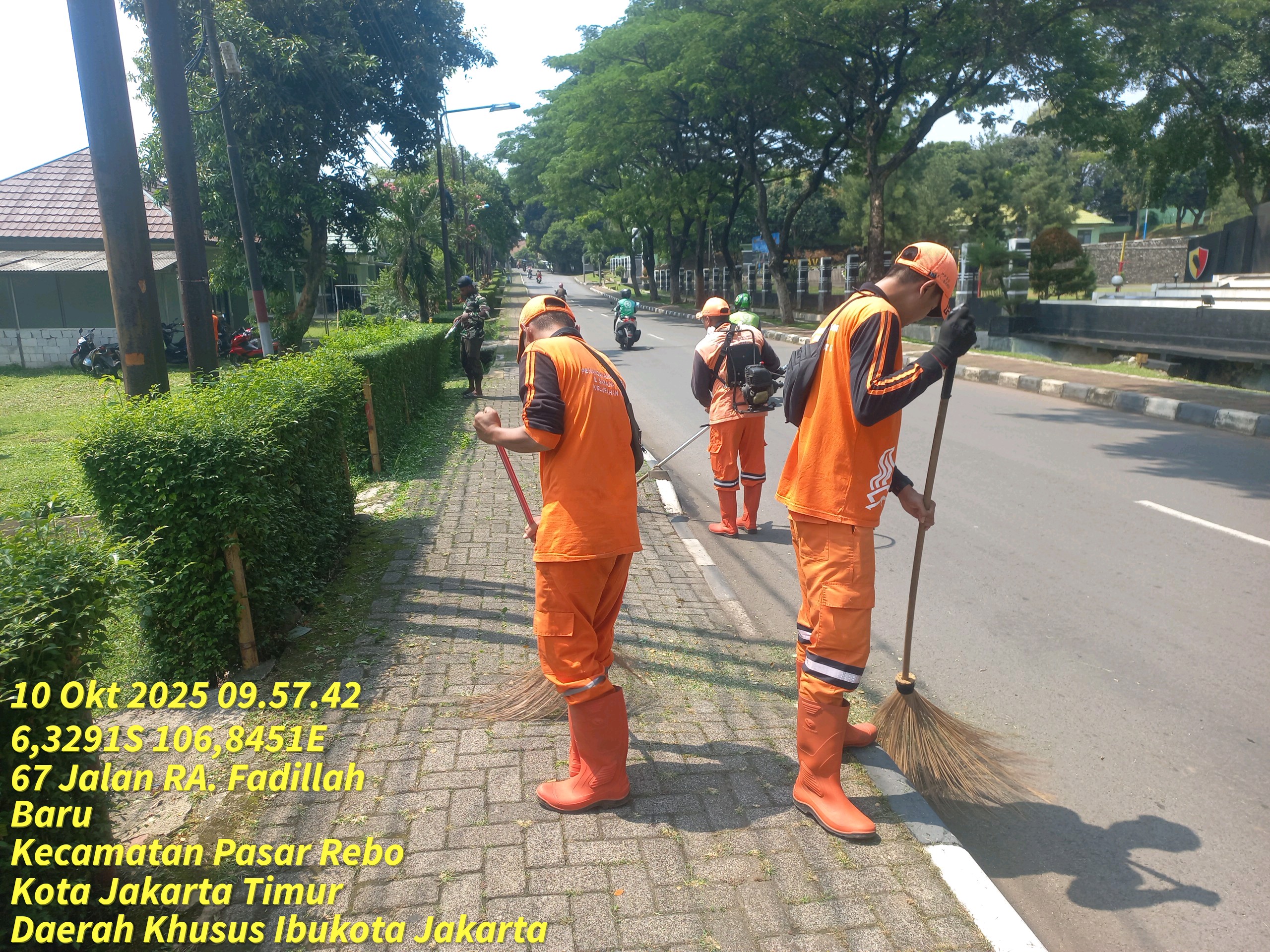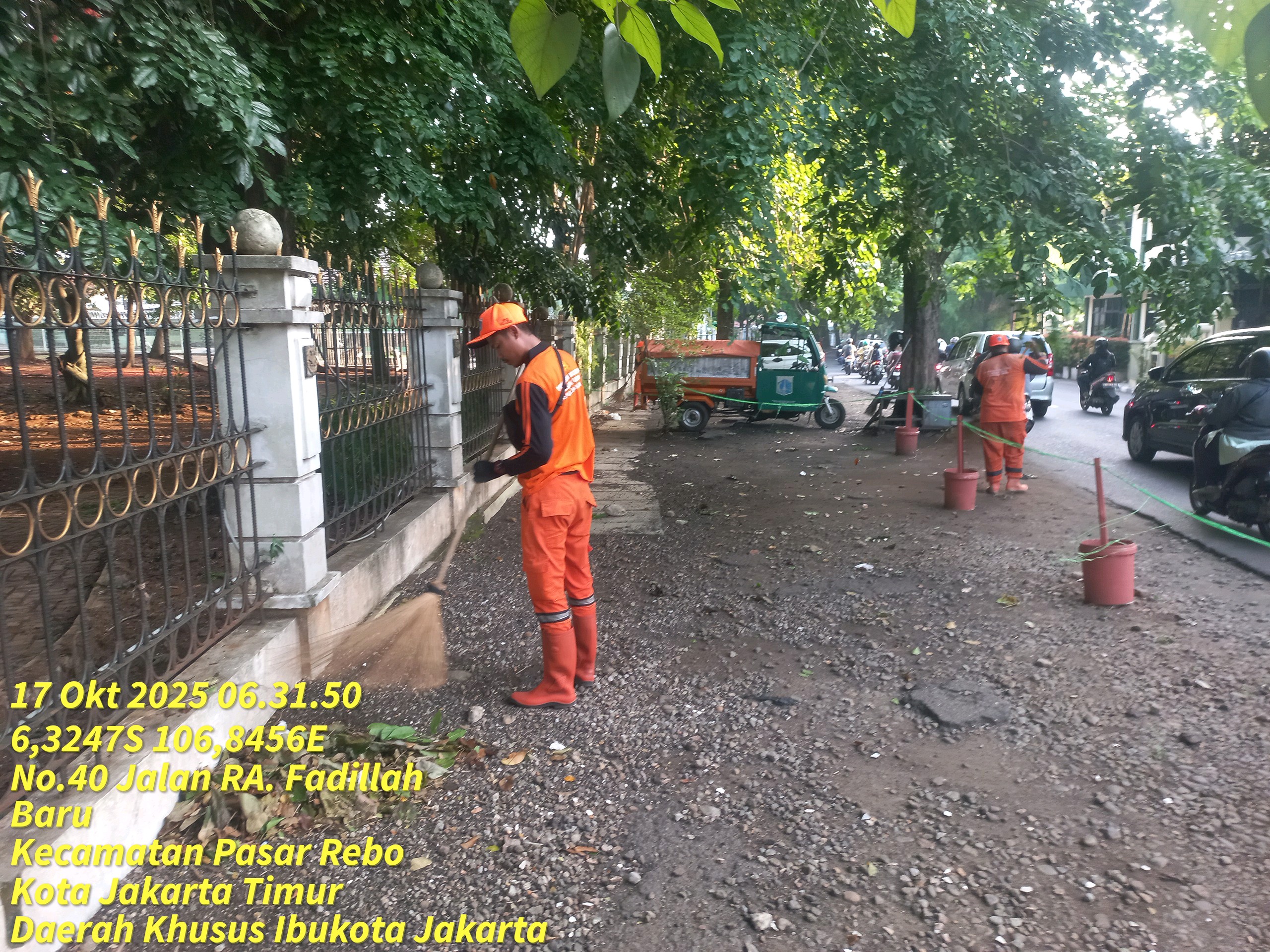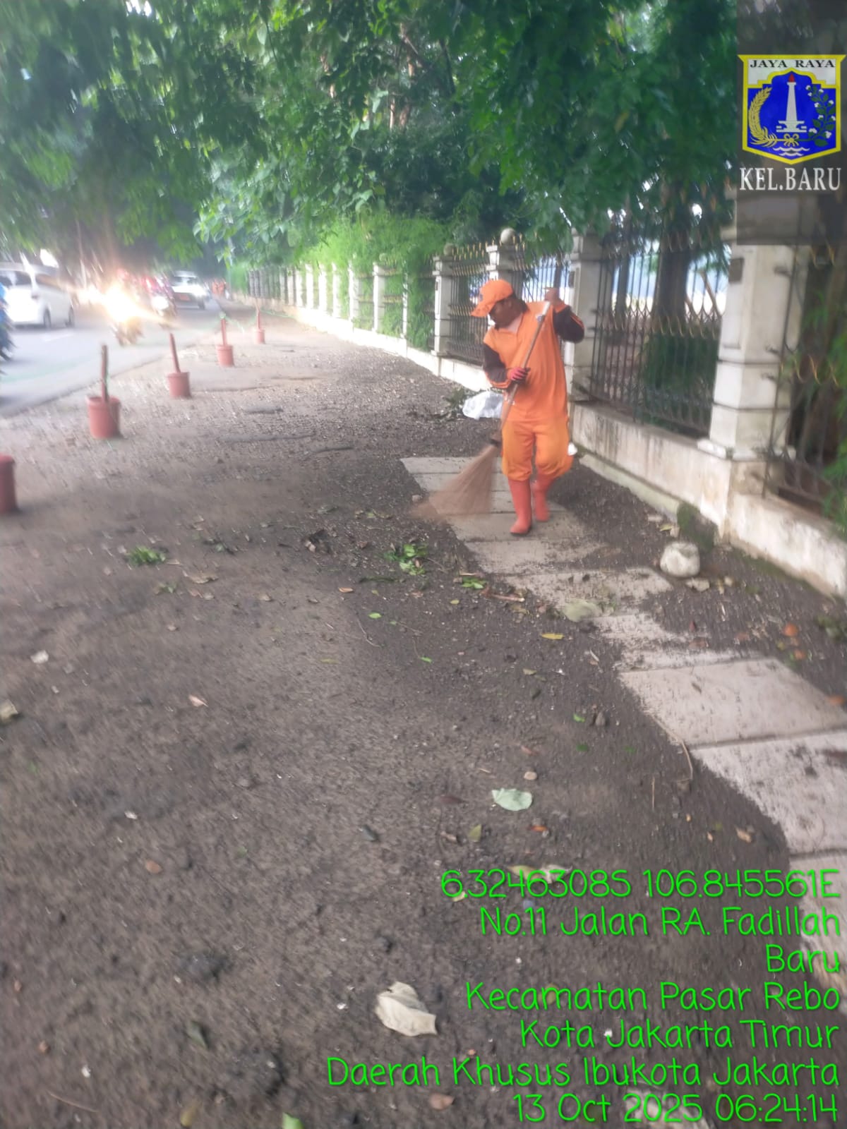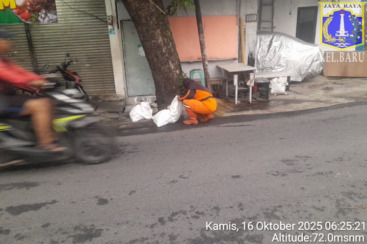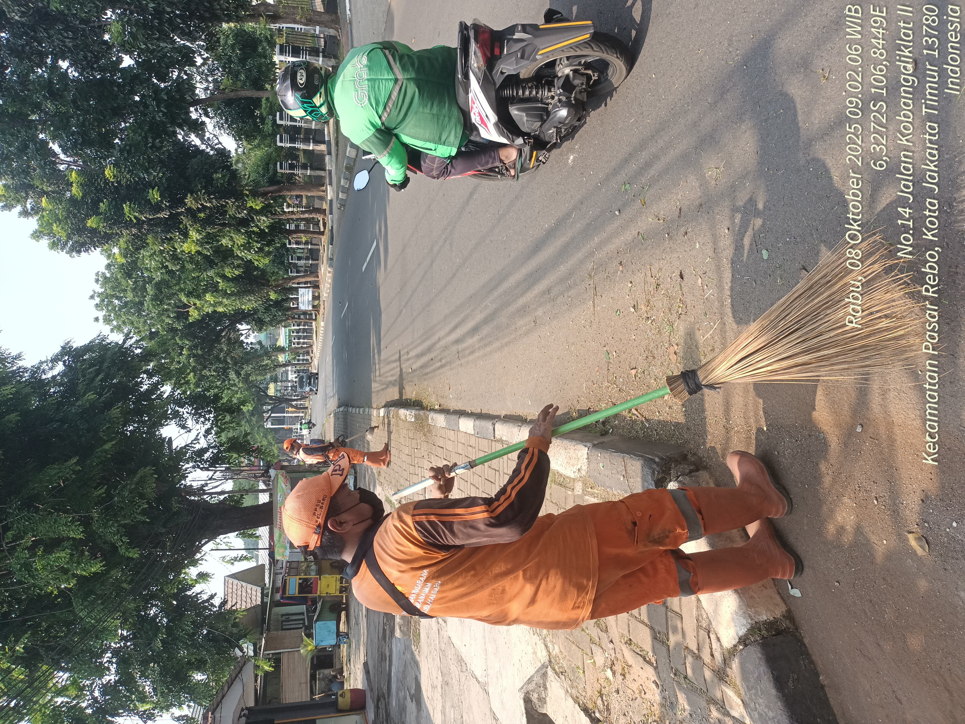 78 | 1 | Jum'at, 10 oktober 2025 | Melakukan penyapuan pagi Jalan protokol | Jl. Kalisari 3 ~ Jl. Gongseng raya serta Jalan Artei (Jl. Aljadid) , RT 002/ RW01 | ![]() |