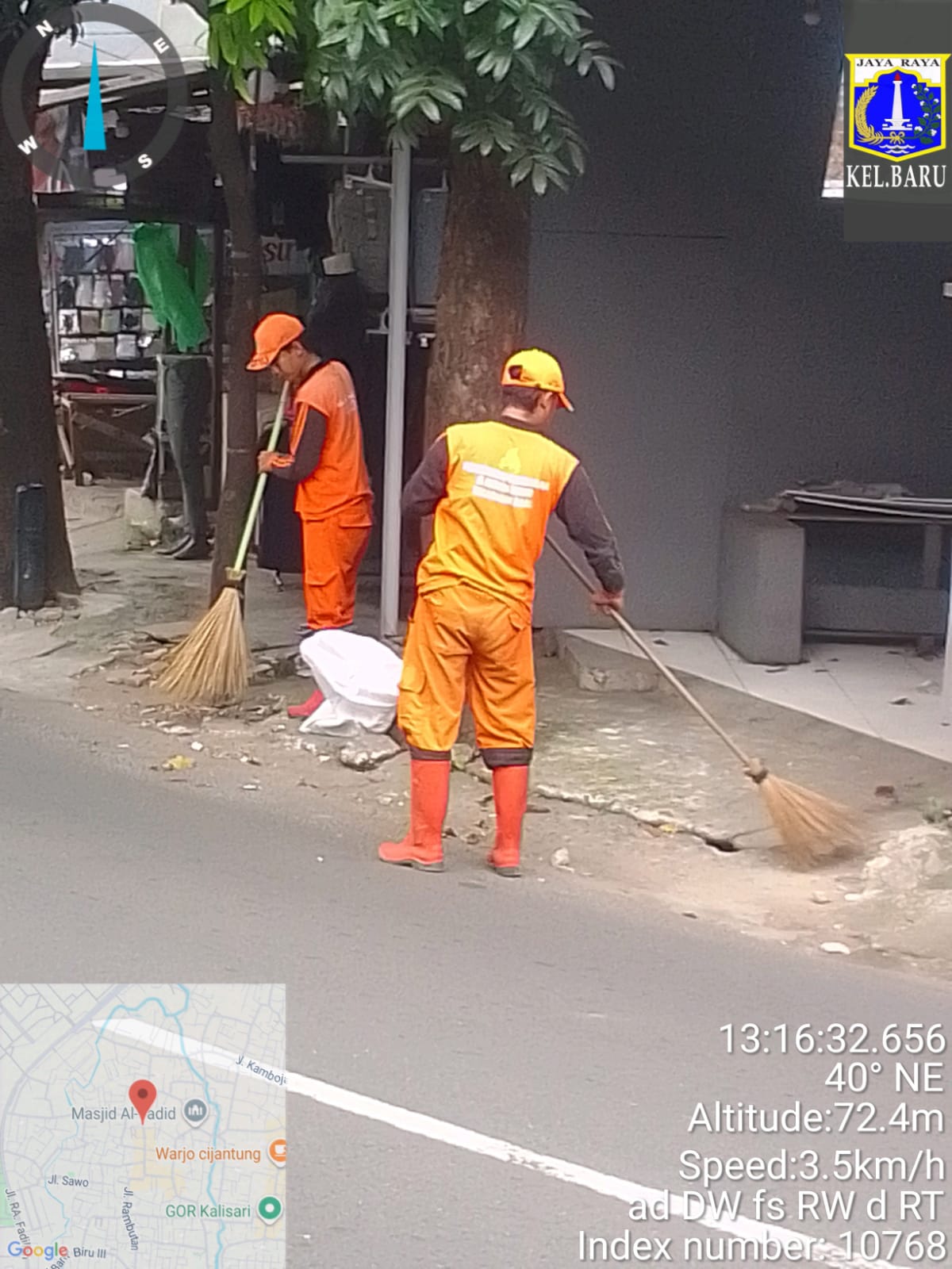 32 | 5 | Kamis, 16 oktober 2025 | Pelakukan penyapuan jalan protokol | Jln H Moong - taman segitiga , RT 008/ RW01 | ![]() |