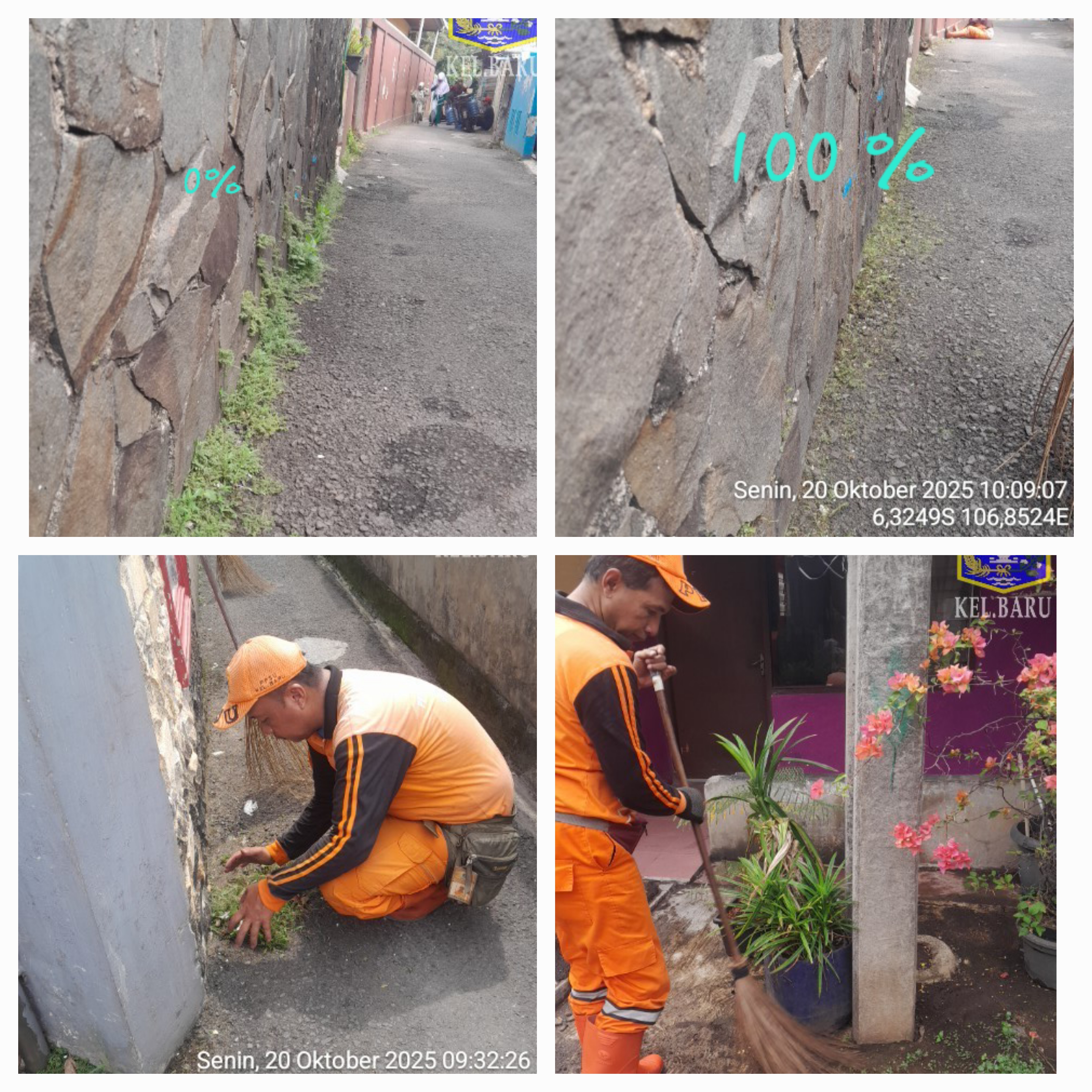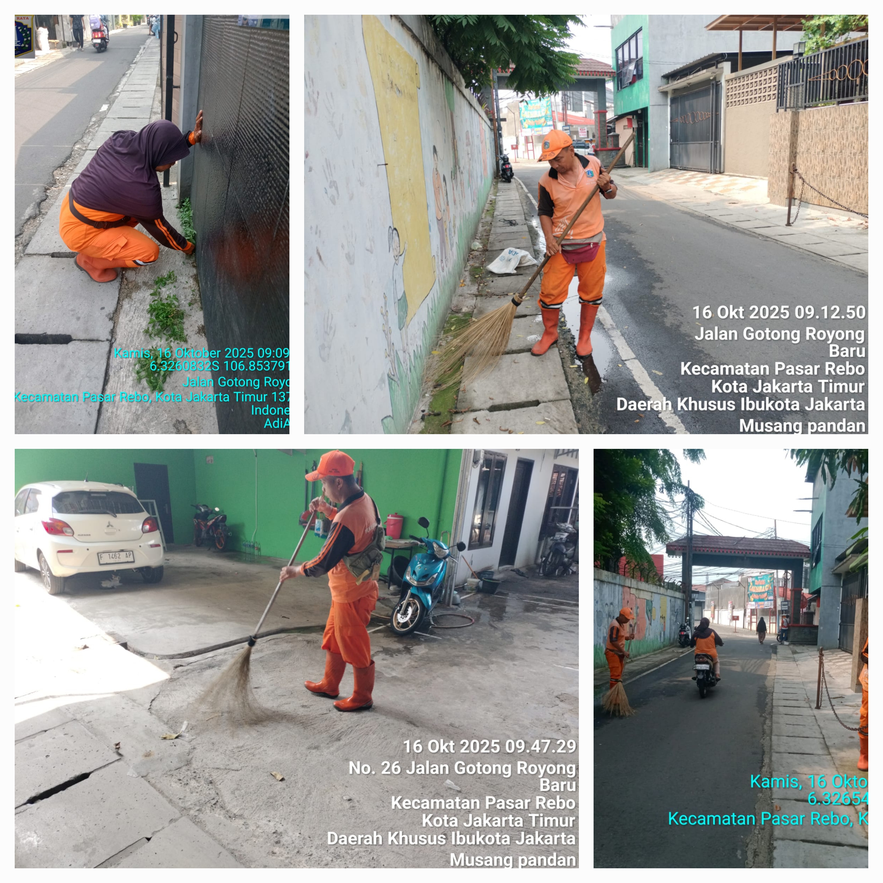 71 | 3 | Senin, 13 oktober 2025 | Pembersihan | Gang baru , RT 002/ RW10 | ![]() |