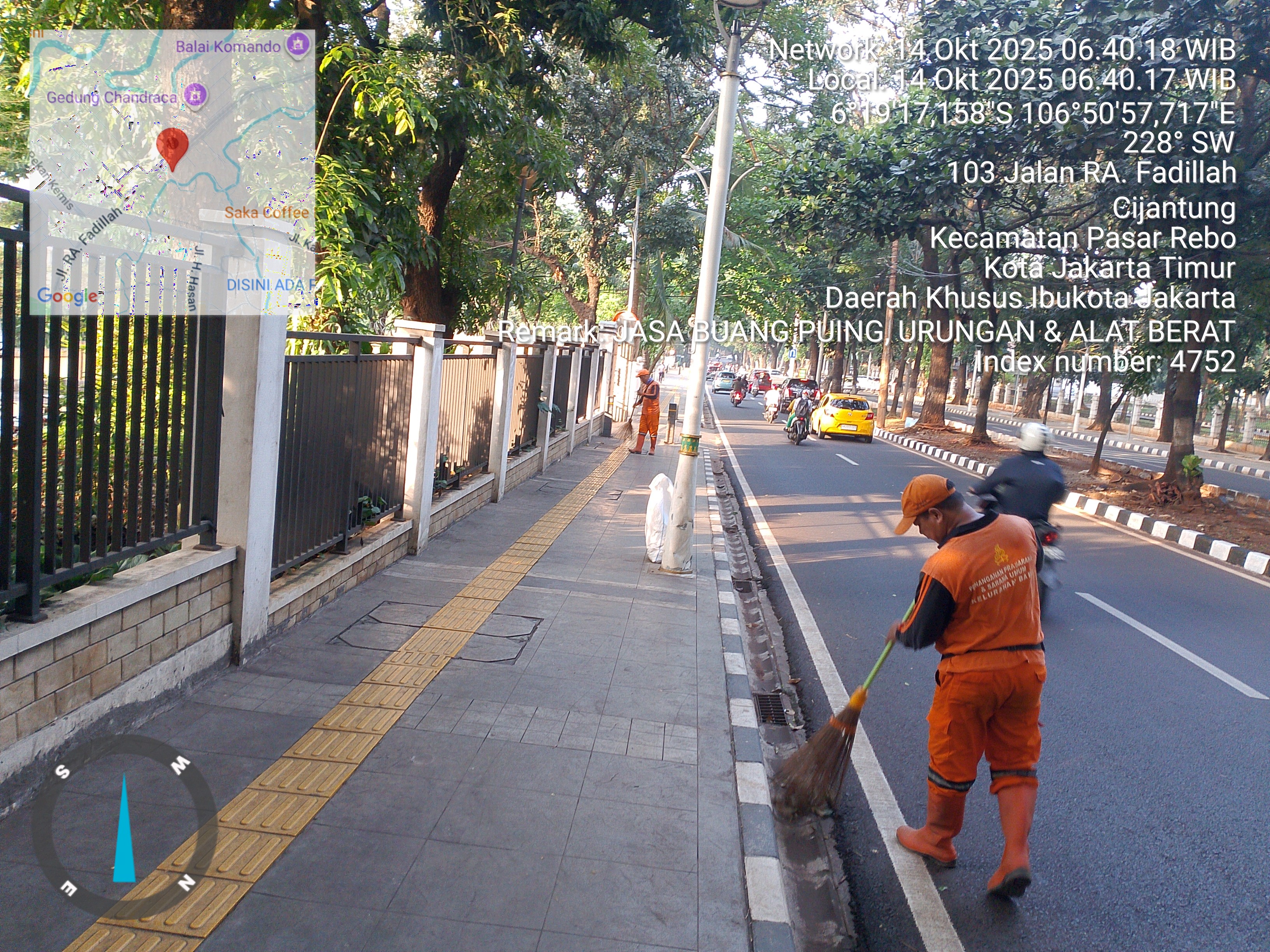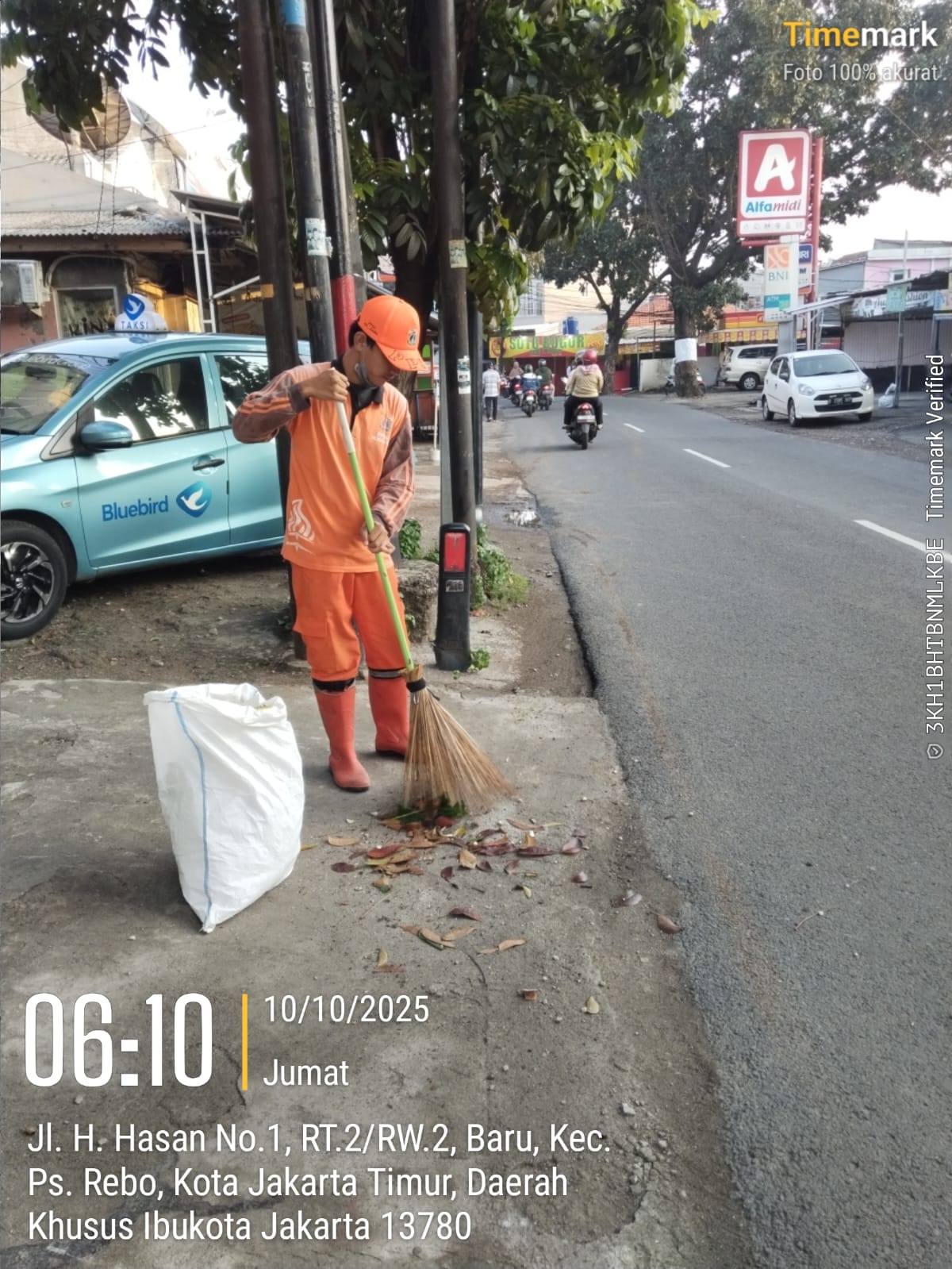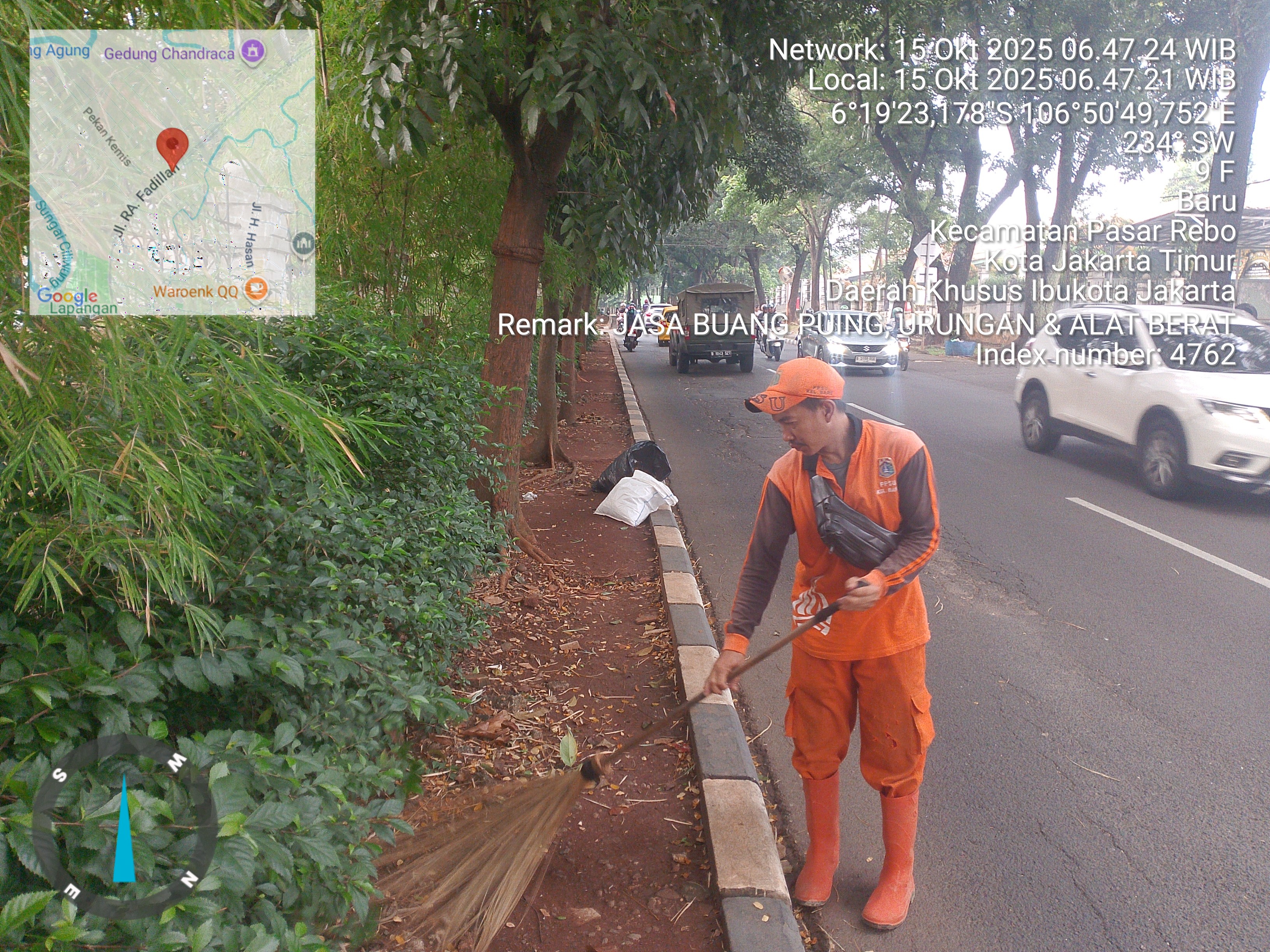 62 | 1 | Senin, 13 oktober 2025 | Melakukan penyapuan pagi Jalan protokol | Jl. Hasan ( moong ~ bstas ) , RT 003/ RW10 | ![]() |