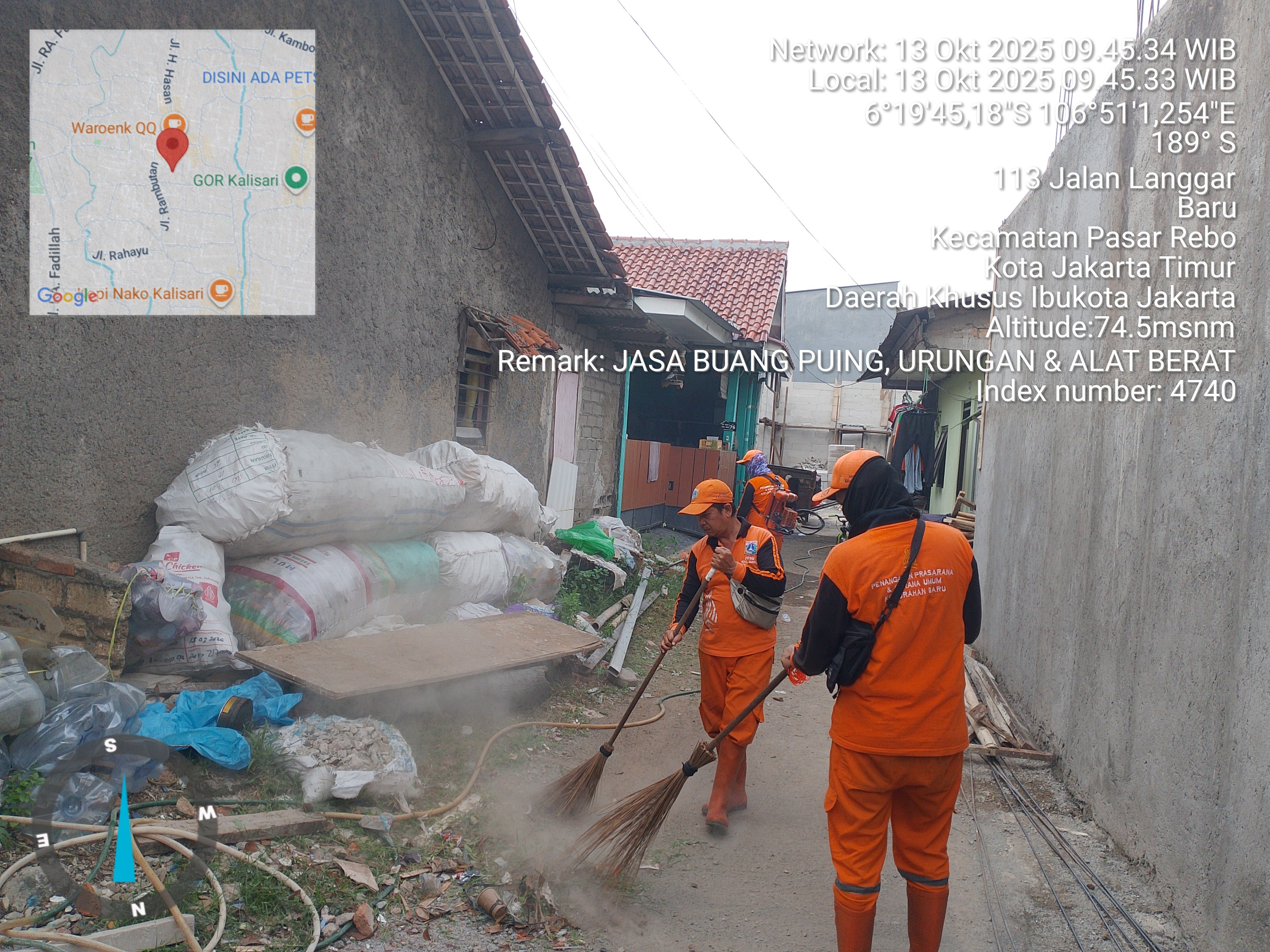 34 | 5 | Kamis, 16 oktober 2025 | Melakukan pengurukan sampah di selokan | Jln H Remaih , RT 004/ RW07 | ![]() |