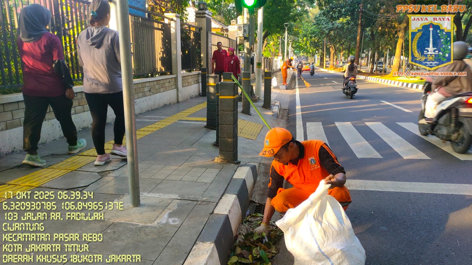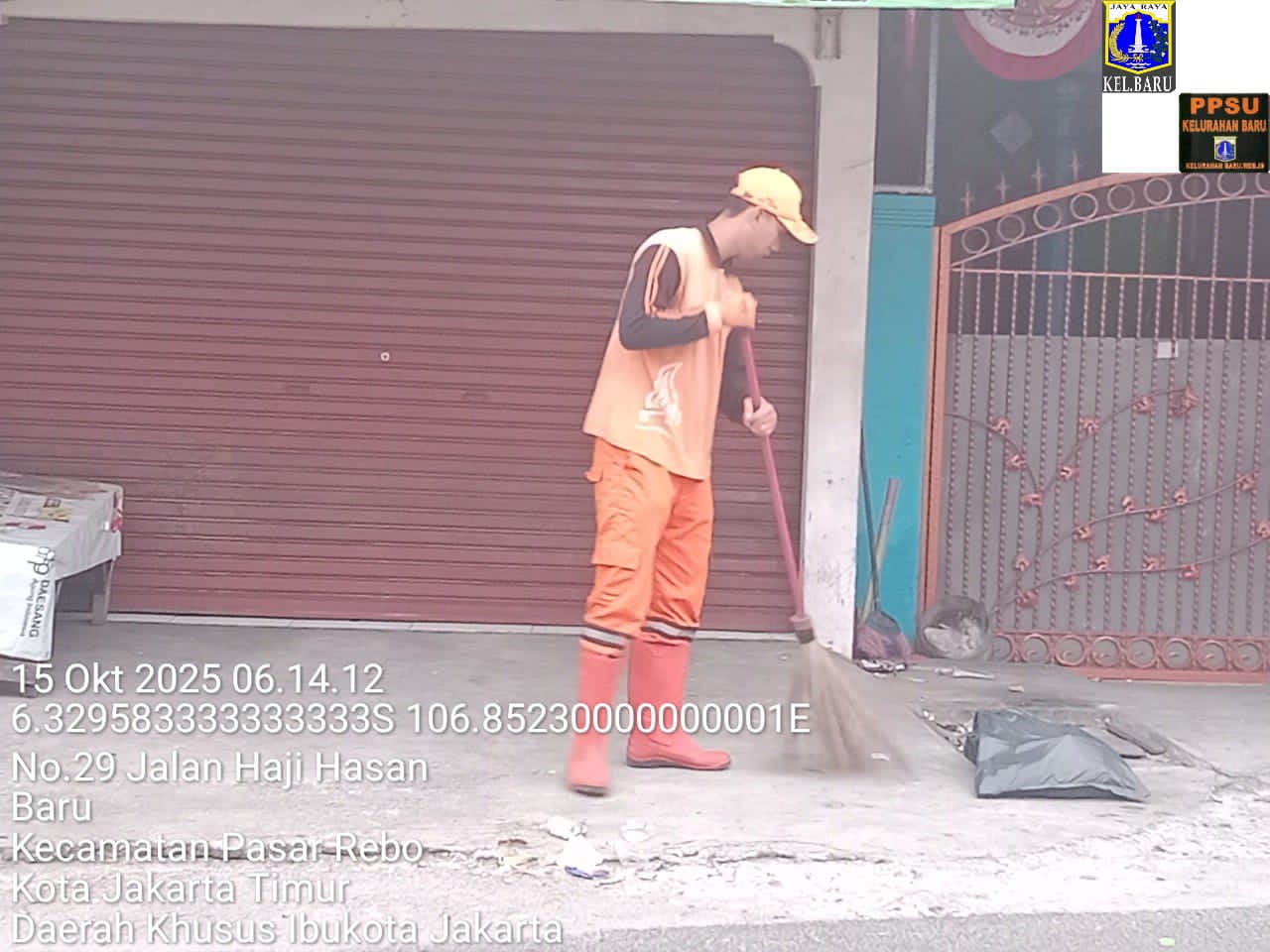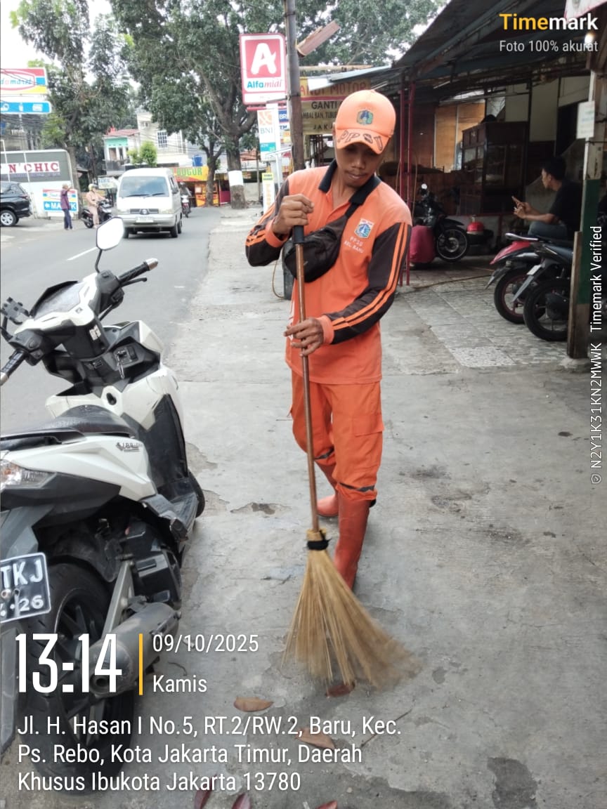 40 | 1 | Rabu, 15 oktober 2025 | Melakukan penyapuan pagi Jalan protokol | Jl. Hasan ( moong ~ bstas ) , RT 003/ RW09 | ![]() |