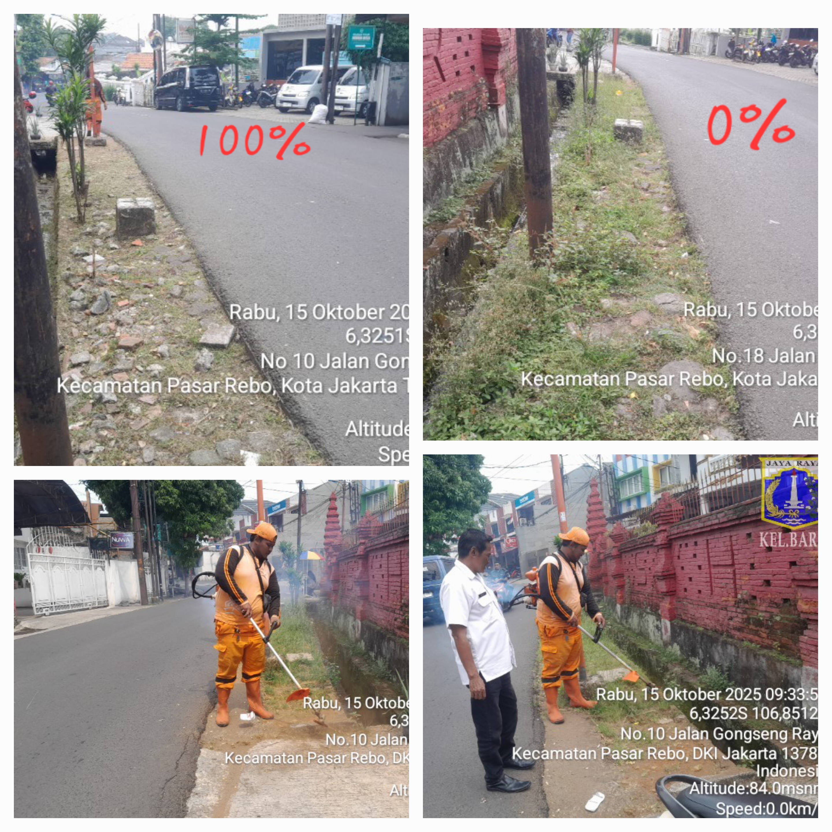 100 | 1 | Rabu, 8 oktober 2025 | Melakukan pembabatan rumput liar | Jl. Gotong royong 1 , RT 005/ RW01 | ![]() |