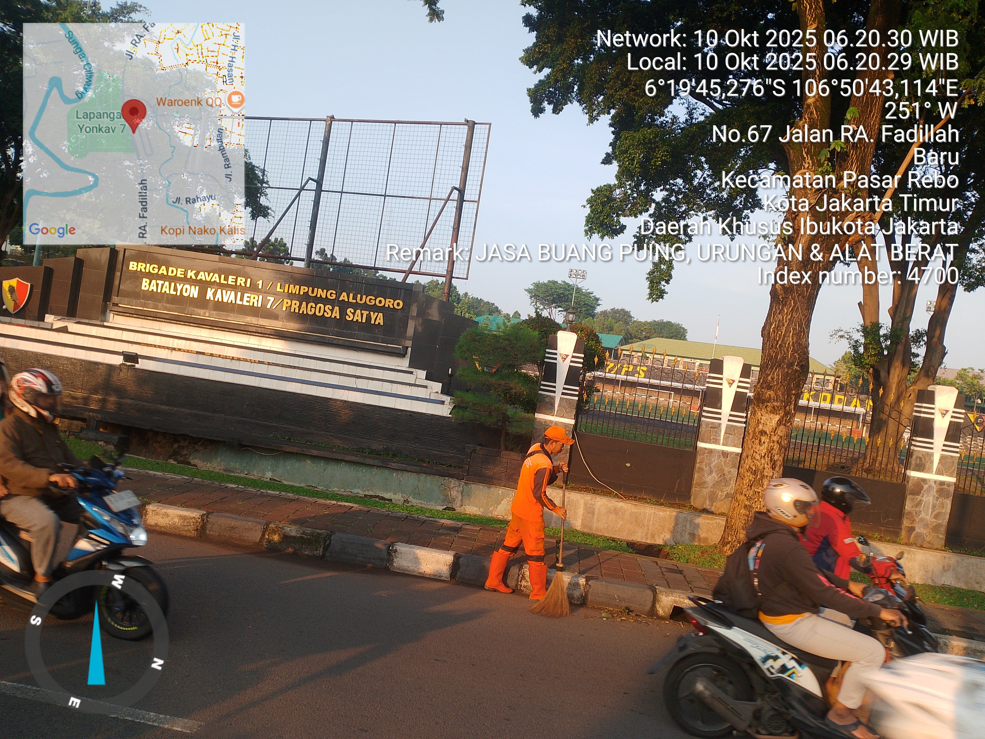 18 | 1 | Jum'at, 17 oktober 2025 | Melakukan penyapuan pagi Jalan protokol | Jl. Hasan ( moong ~ bstas ) dan Jl. Rambutan , RT Rt 02 dan Rt 03/ RWRW 10 : Rw 09 | ![]() |