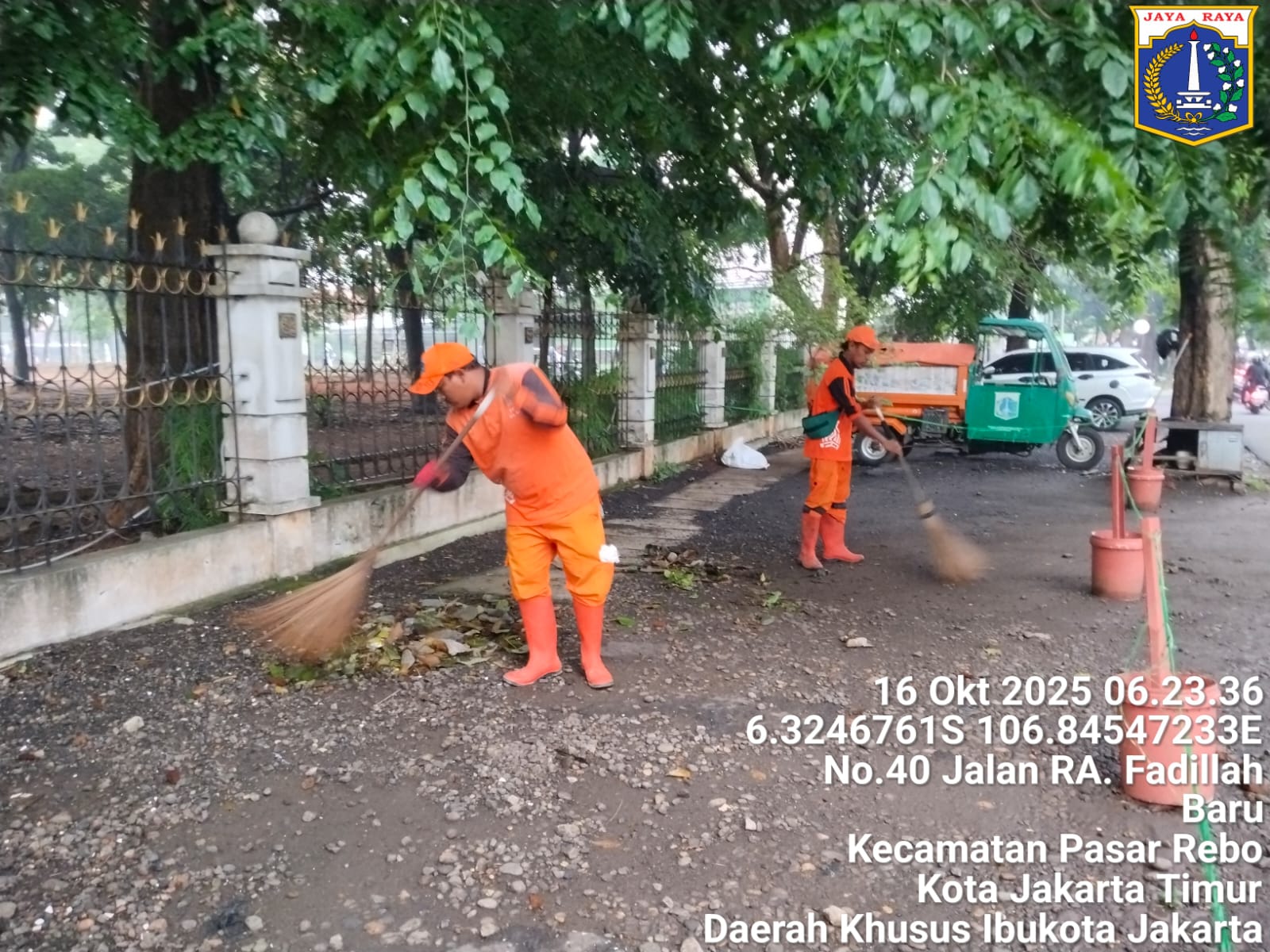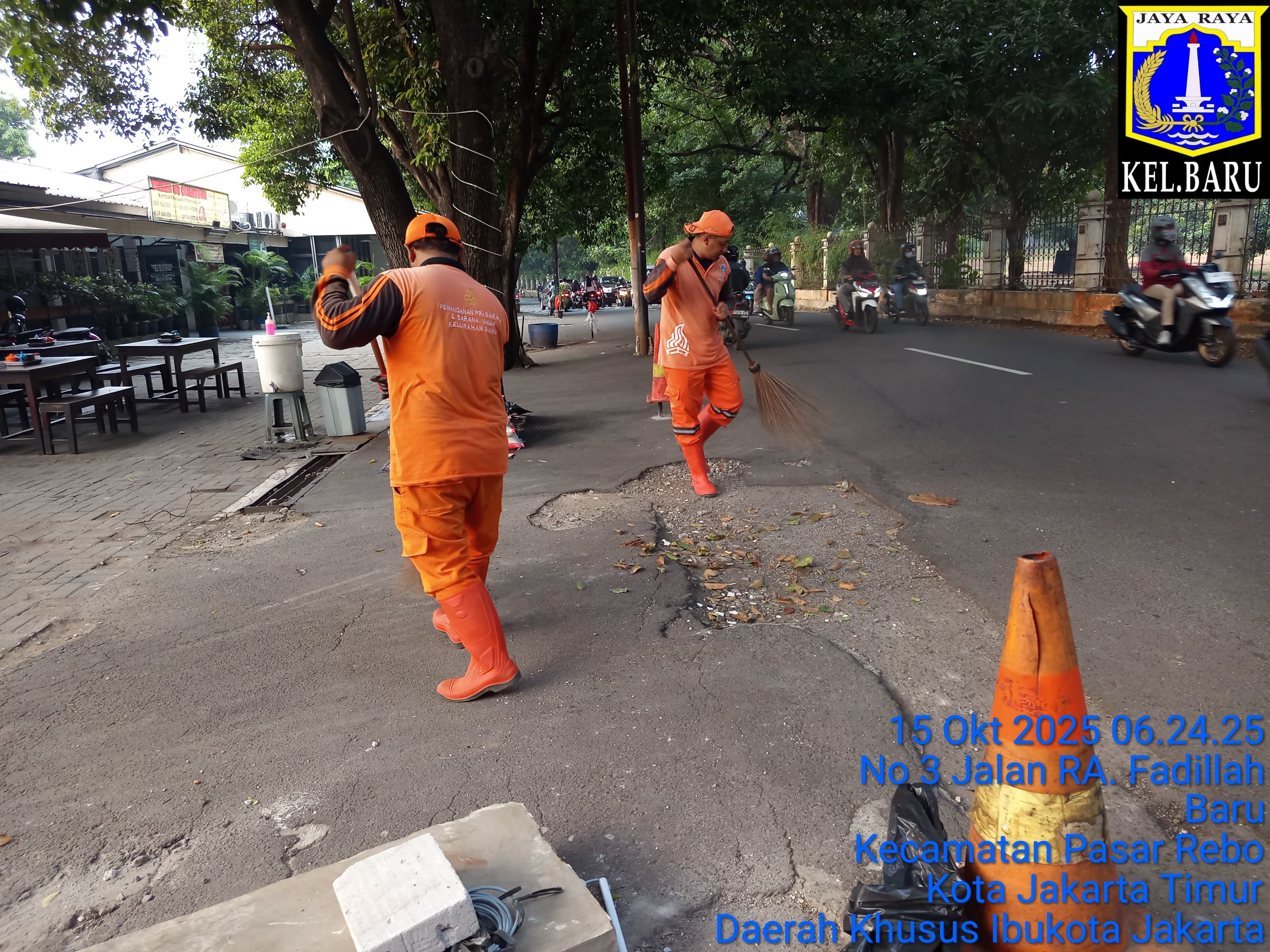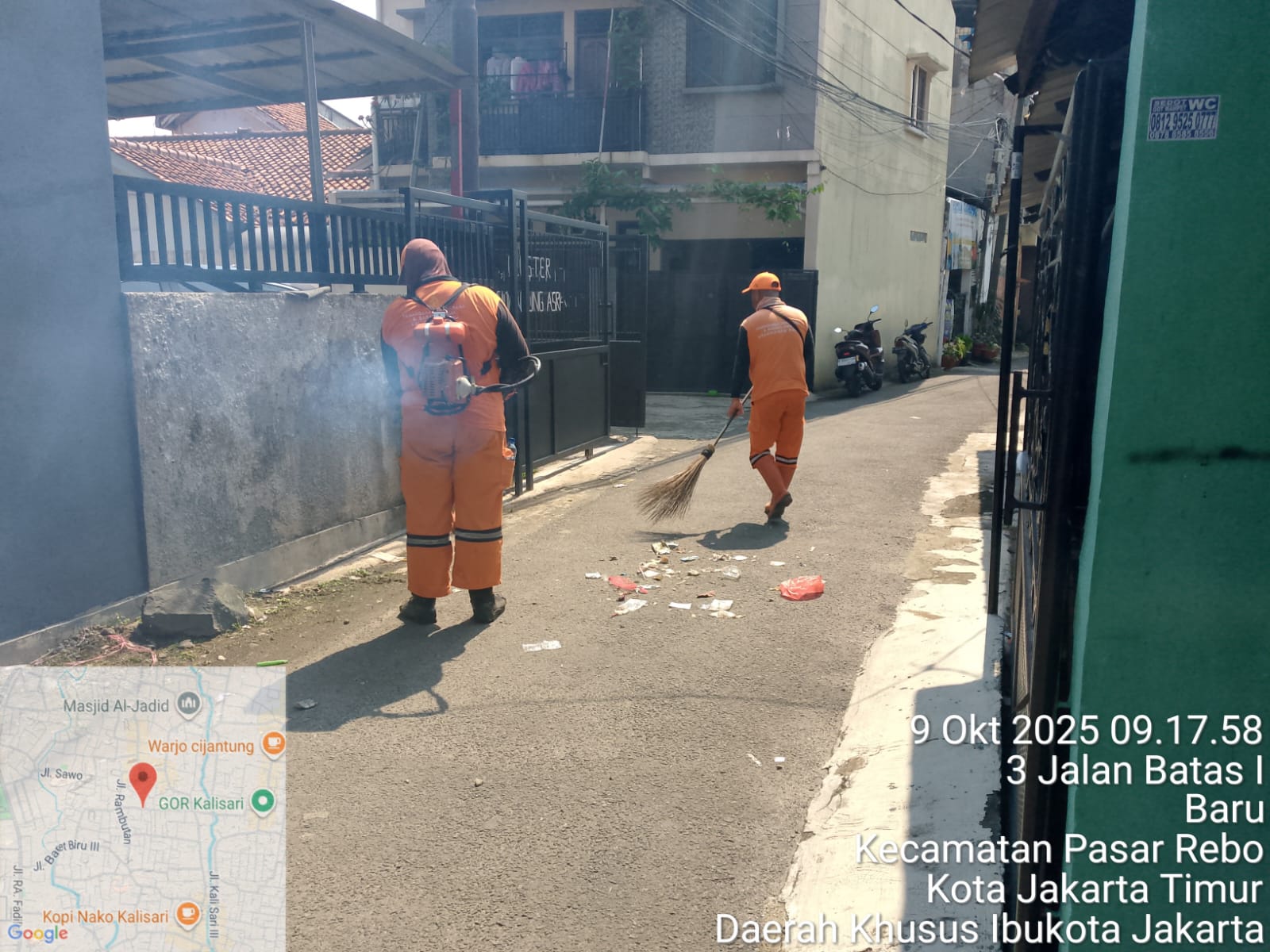 99 | 1 | Rabu, 8 oktober 2025 | Melakukan penyapuan pagi Jalan protokol | Jl. Kalisari 3 ~ Jl. Gongseng raya serta Jalan Artei (Jl. Aljadid) , RT Rt 02 ; Rt 07 ; Rt 01/ RWRw 09 ; Rw 01 | ![]() |