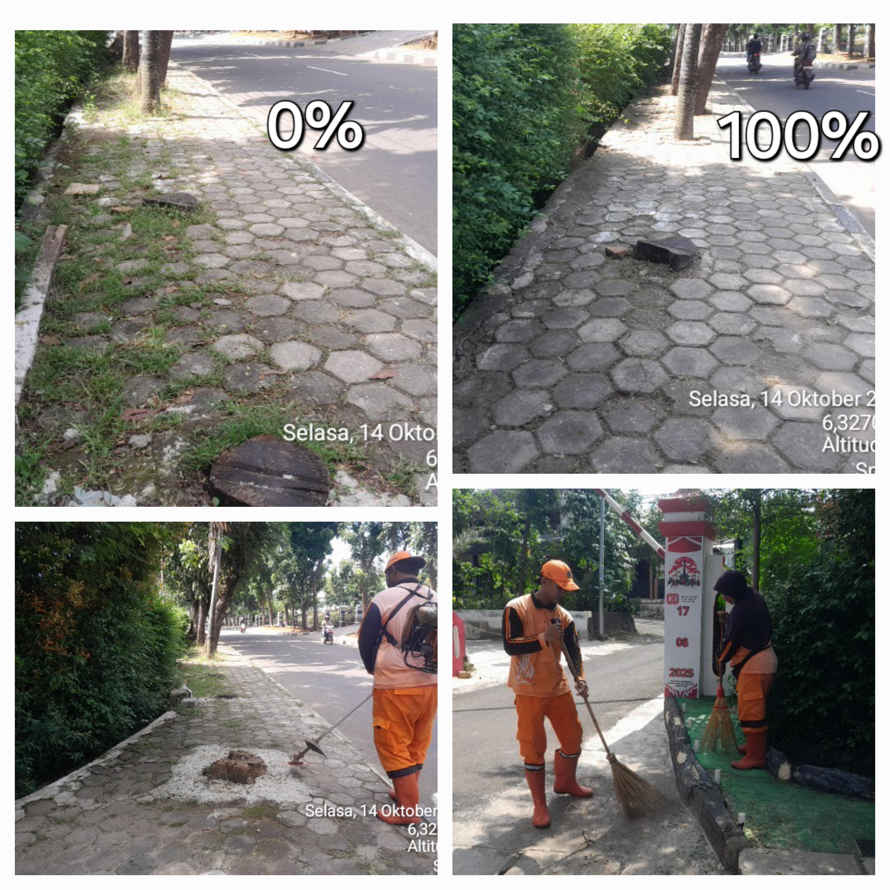 84 | 4 | Kamis, 9 oktober 2025 | Penyapuan pagi | Jl.H.Hasan ( Taman Segitiga- H.Mo'ong) , RT 001 s/d 005,009/ RW01 ,02 | ![]() |