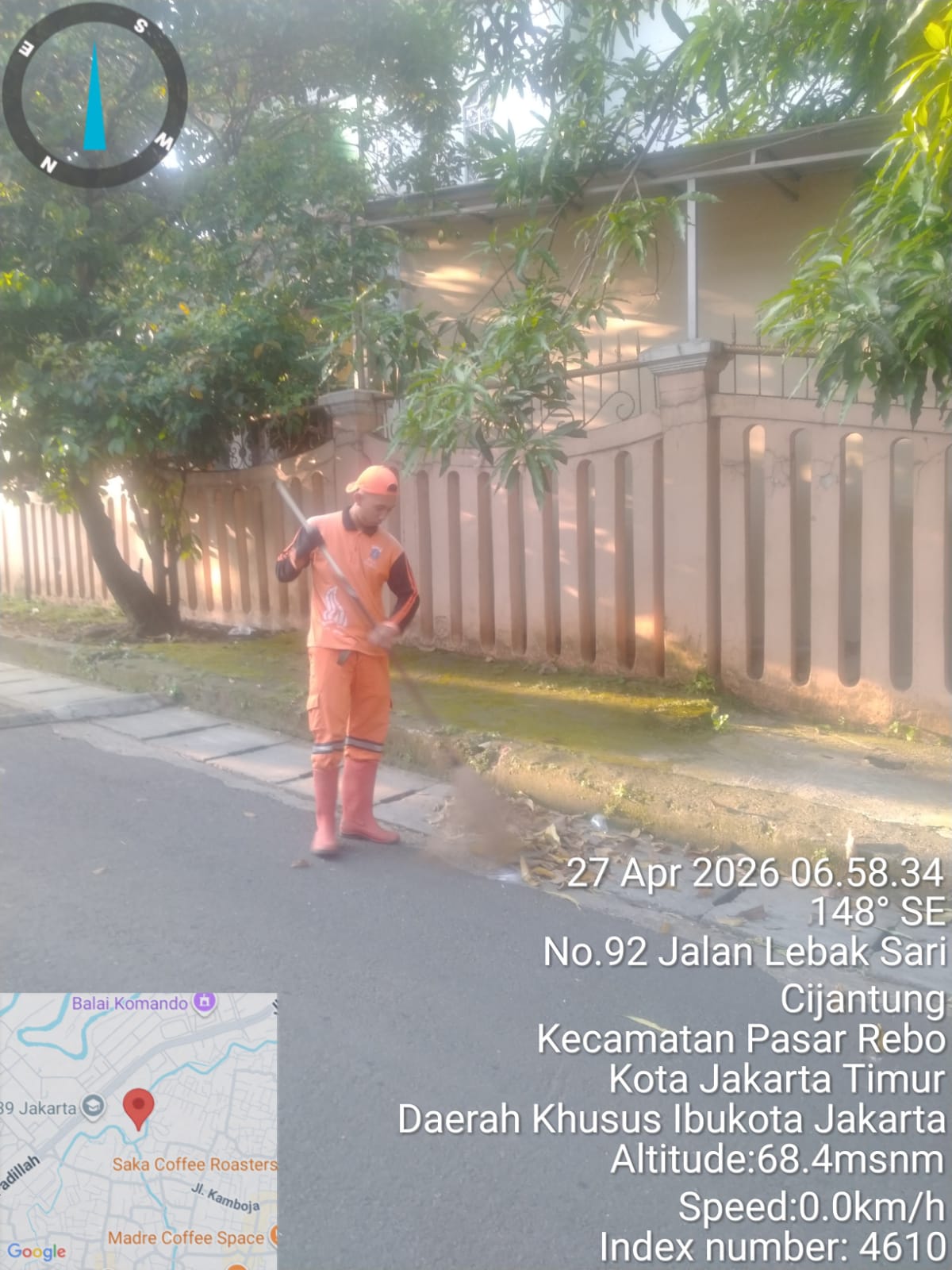 | 4 | 2 | Senin, 27 april 2026 | Penyapuan jalan protokol | Jl.R.A.Fadhilah , RT 005/ RW08 | ![]() |